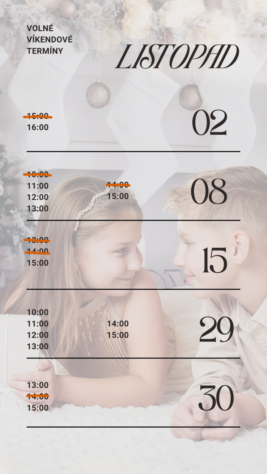 REZERVUJ SI SVŮJ TERMÍN JEŠTĚ DNES A ZAJISTI SI MÍSTO V TOMTO MAGICKÉM VÁNOČNÍM ČASE! TĚŠÍM SE NA TEBE!
